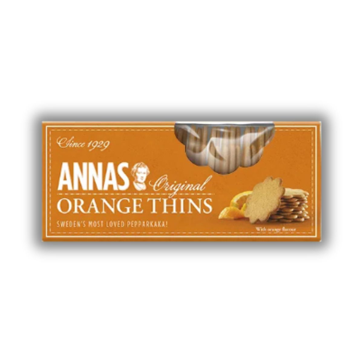Περιέχει: Annas Orange Thins 150gr το τεμάχιο.